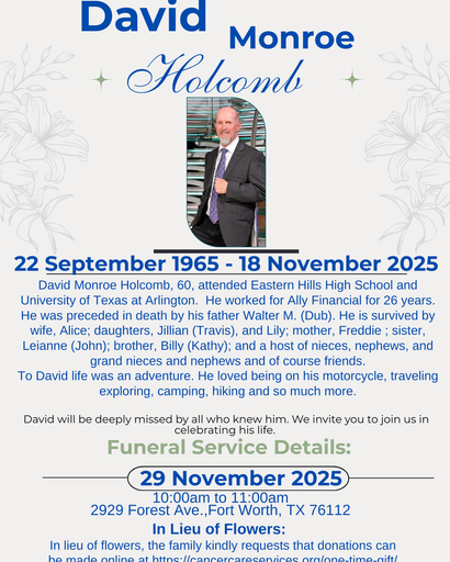 In Loving Memory of David Monroe Holcomb 22 September 1965 – 18 November 2025